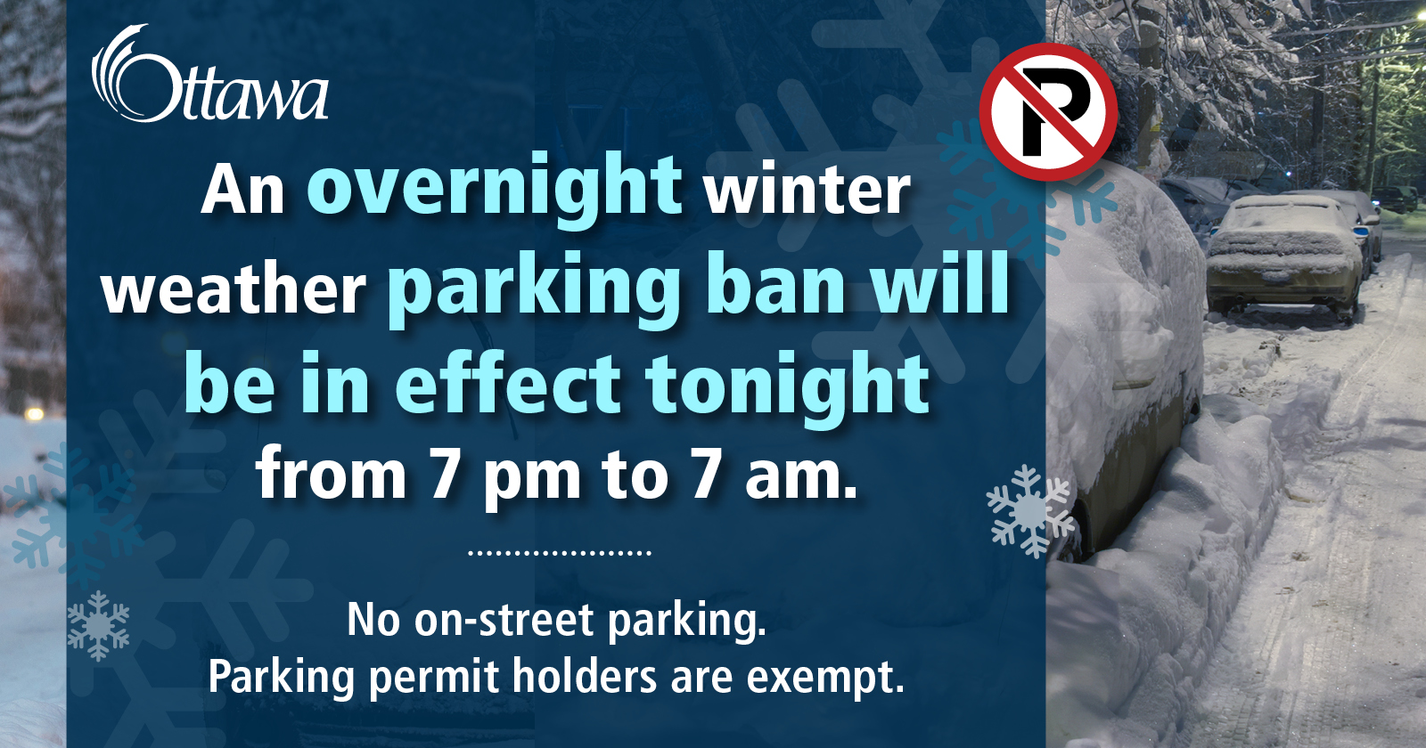 City Of Ottawa On Twitter A Winter Weather Parking Ban Will Be In Effect Tonight December 16 From 7 Pm Until 7 Am Tomorrow Morning Https T Co By4eqxqcrv During A Winter Weather Parking Ban